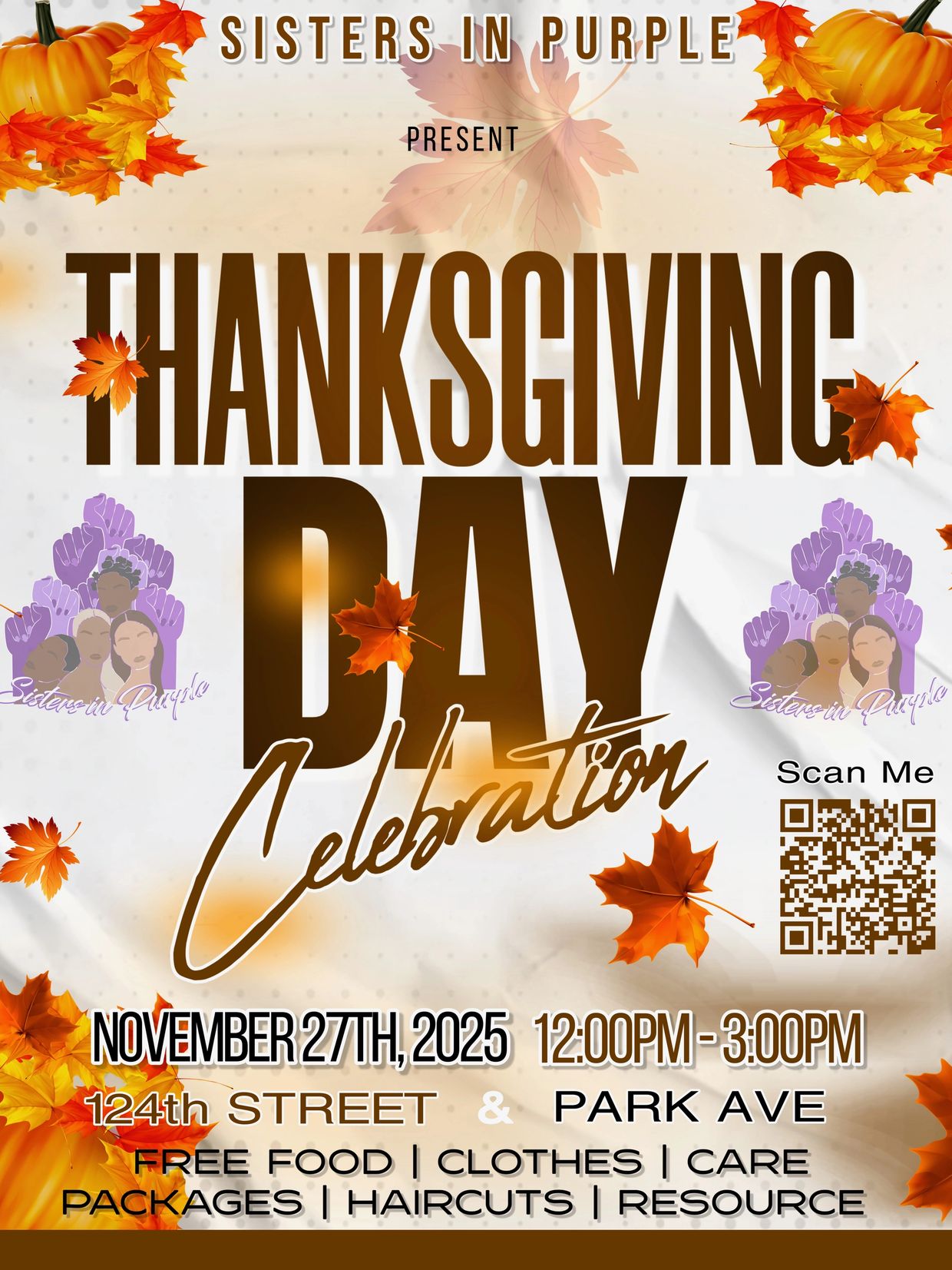 On Thanksgiving, Day, we're bringing warmth and love directly to our Harlem community. We'll be giving away hot meals, fresh haircuts, care packages, and vital resources to all who need them. Register, Donate & Volunteer Today!